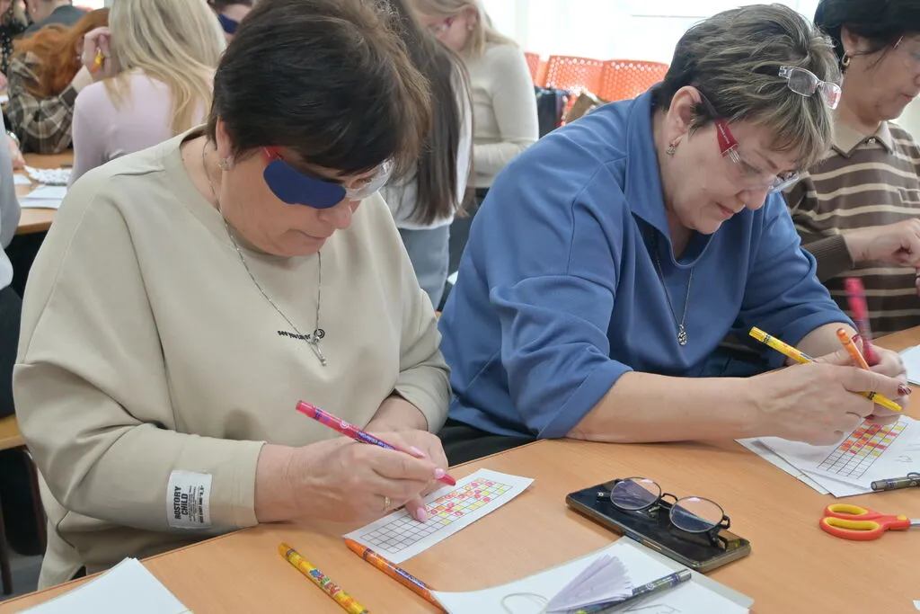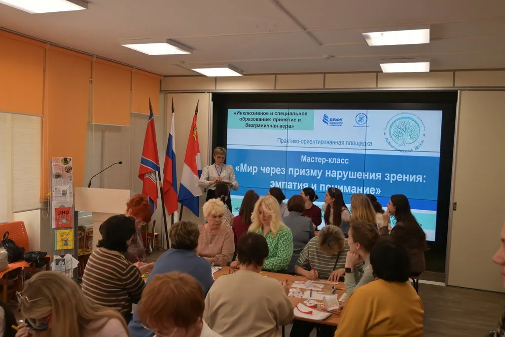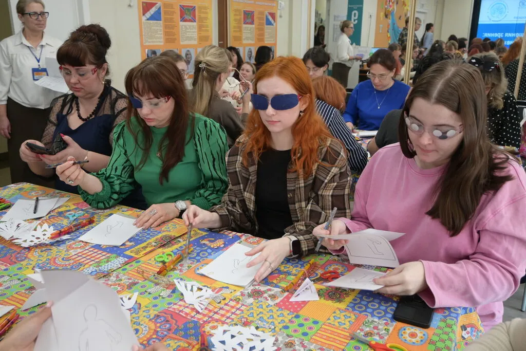 - мастер‑класс «Мир через призму нарушения зрения: эмпатия и понимание» — участники погрузились в опыт людей с нарушениями зрения и примерили на себя родь ребенка с нарушением зрения, чтобы понять как ощущает себя такой ученик в процессе обучения;